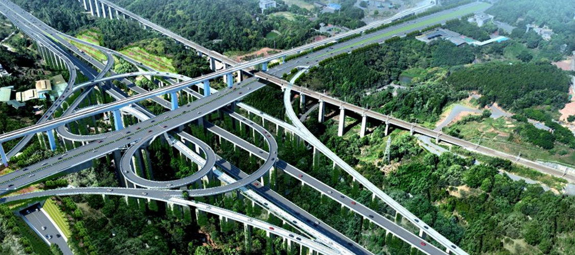 項目道路全長25km,為貨運交通為主的城市主干路,雙向八車道,設計速度60km/h,建安費約75億元。項目位于中梁山南麓,地形地質條件復雜。項目與8條穿山交通干道、 4條軌道、4條鐵路和5座水庫交叉,工程難度極大。